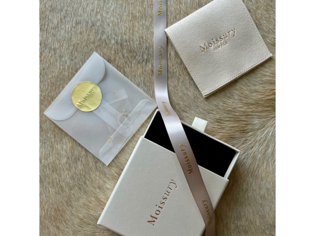 Každý šperk je posielaný v ochrannom obale a krabičke od Moissury a darčekovo zabalené cestujú na Vami zvolenú adresu.