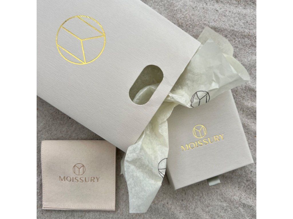 Naše strieborné šperky balíme do dizajnového balenia značky Moissury.